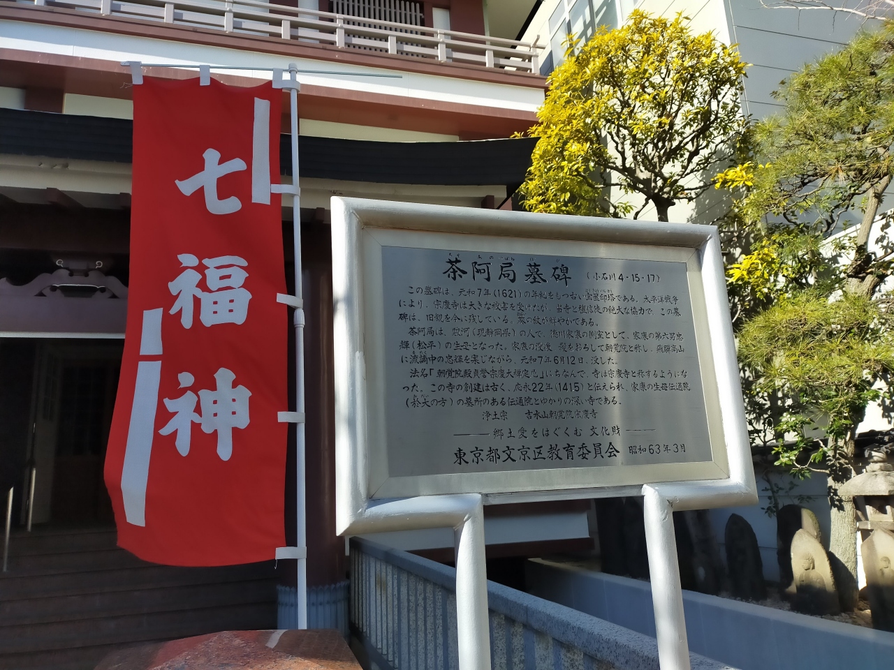 東京都文京区の小石川にある宗慶寺の中にある墓碑です。徳川家康の側室に当たる方のものになります。有名なスポットということで、案内板もしっかりとたてられています。こういった歴史にまつわる重要ポイントである為、訪れる人も多いですね。