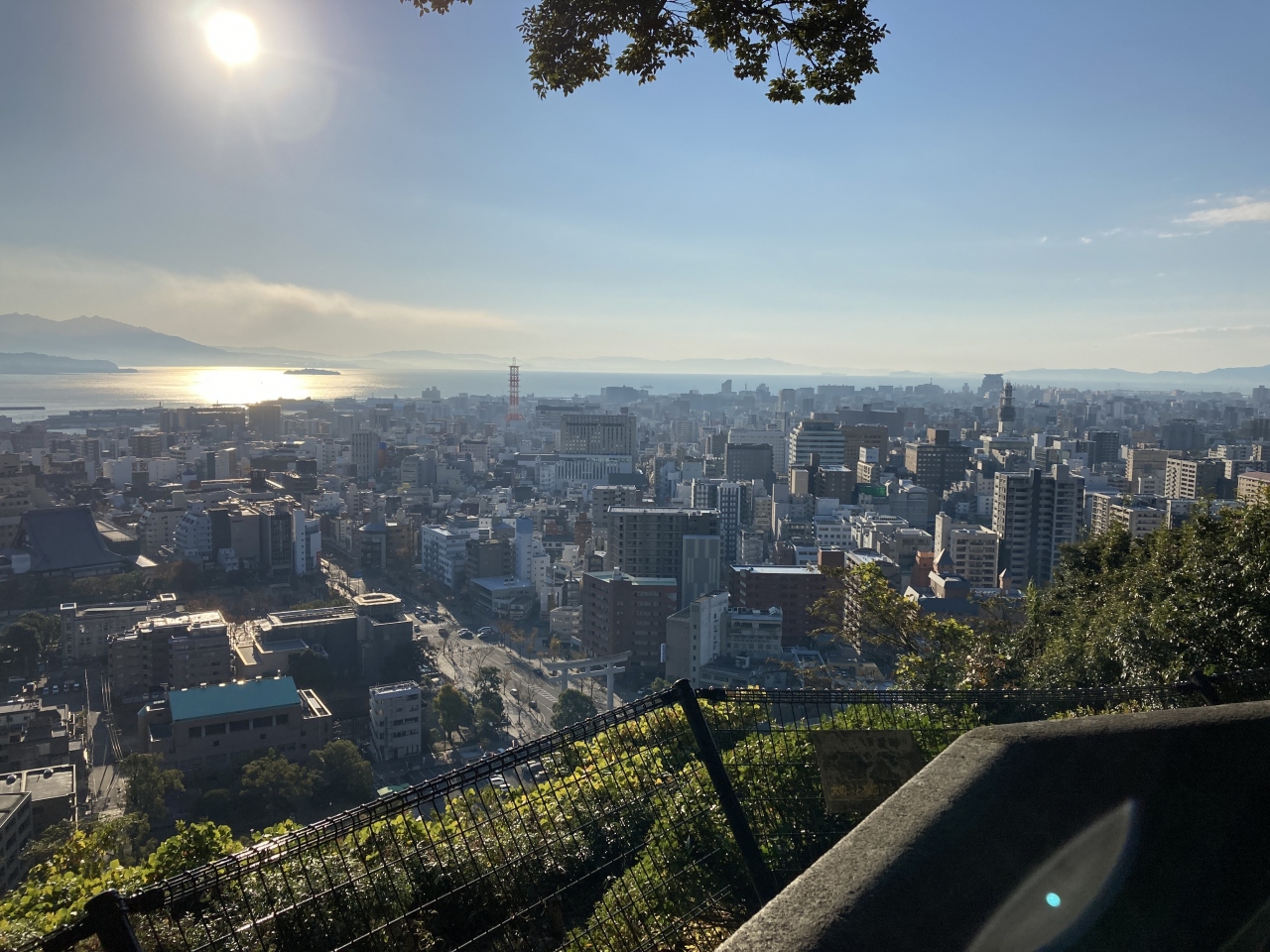 鶴丸城跡の裏手の城山にある展望スポットです。散策コースがあって、そちらをぶらぶらと散策しながら気軽に山頂エリアに行くことができます。山頂エリアが公園になっていて、その一角に展望スポットがあります。お天気によりますけれど、霧がかかっていなければ、鹿児島の象徴になっている桜島の景色を堪能することができます。市街地エリアも眺めることができるスポットで、鶴丸城跡にも近く、付近に観光スポットもあるので、鹿児島市内の観光の際にお勧めスポットです。夜景を眺めるのにもいいと思いました。