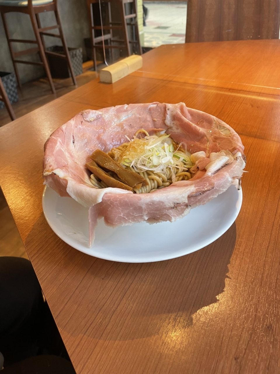 コロナの中昼間でもかなり並んでいました中に入ると若い人が多かったようです女性はつゆなしを食べている人が多かったみたいですとてもおいしくいただきました肉も5枚まで選べるのでおもしろいです麺は太めんです私はほそめんの方がよかったかな