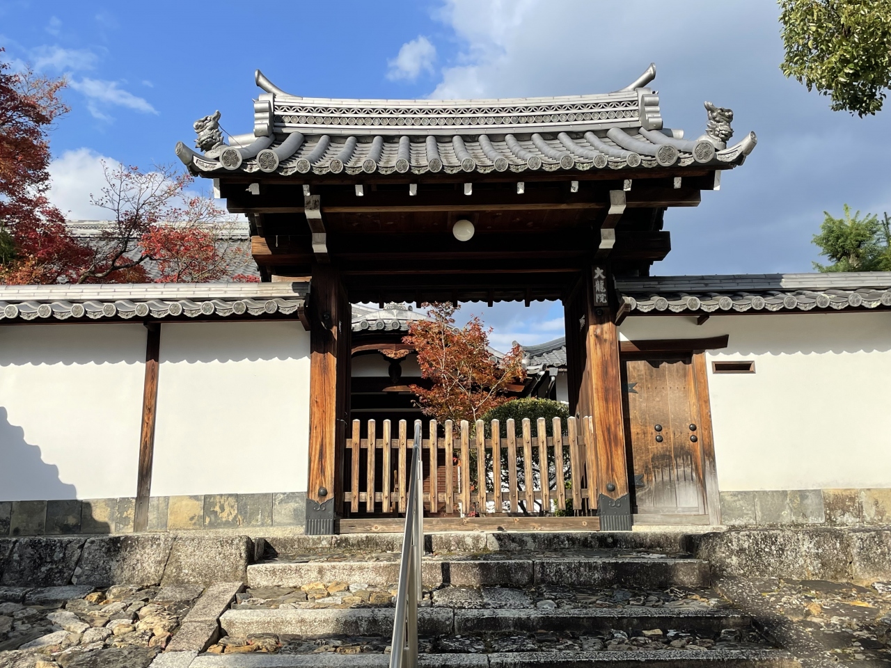 臨済宗妙心寺派の大本山妙心寺の塔頭寺院の一つで、境内の西側少し階段を上がった所にあります。1606年、大名・中村忠一が、亡き父の菩提を弔うために創建されました。通常は非公開となっているので、中に入ることはできません。