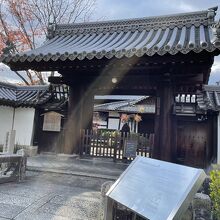 臨済宗妙心寺派の大本山妙心寺の塔頭寺院の一つで、北門からの道沿いにあります。1590年に豊臣秀吉に仕えていた堀尾吉晴(後の初代松江藩主)が息子の菩提を弔うために建立しました。通常は非公開ですが、特別拝観もあるようです。山門の脇には説明書きがありました。