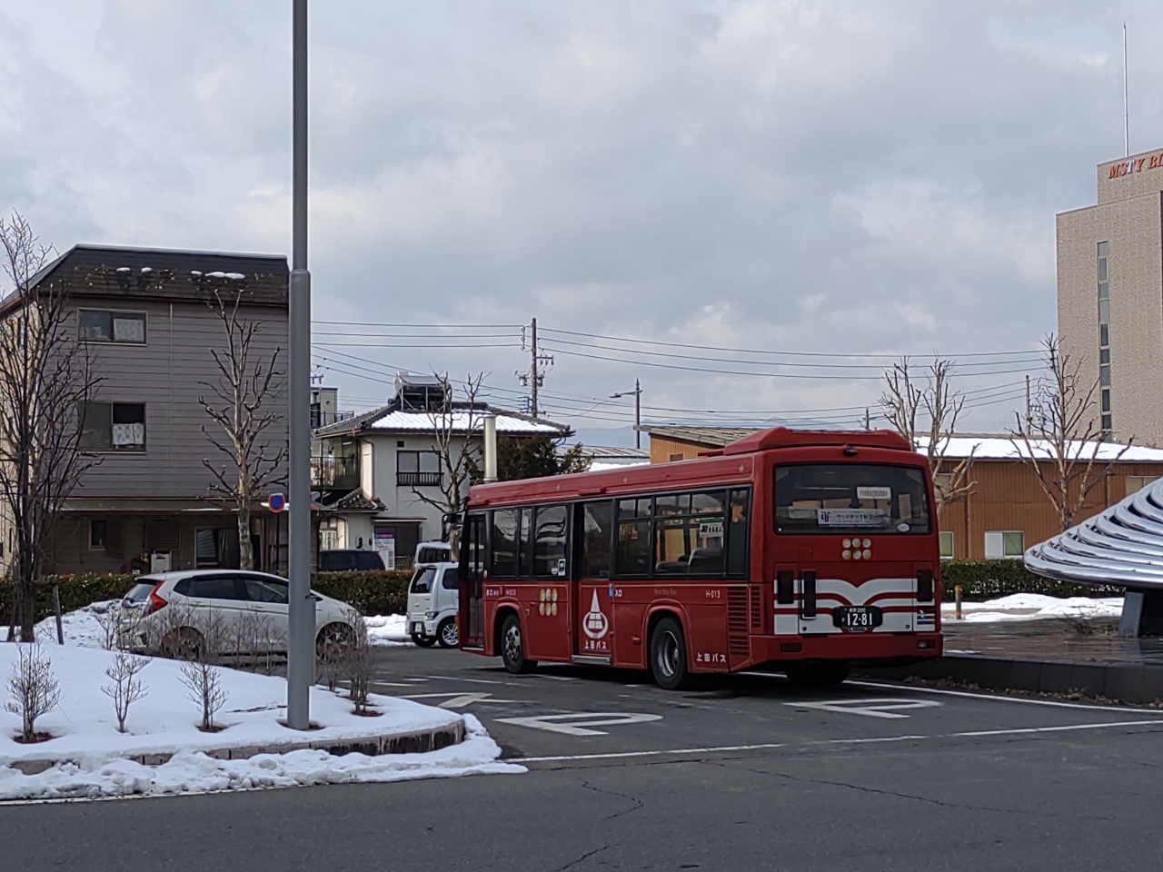 上田駅を拠点に、市街地循環バスや、菅平・真田・渋沢方面や、医療センターや別所温泉を結ぶバスや、西丸子線や、ショッピングセンターを結ぶ線などいろいろあり、地元の方々にとっても大切な足になっているようです。車体が、真田を象徴しています。