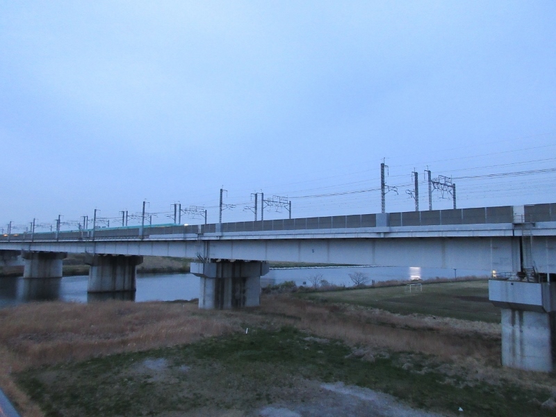埼玉と東京を分けて流れる荒川の両側に連なる緑地です。川のそばは土手になっていて、下った道の向こう側は、運動場になっています。夕方なので人はいませんでしたが、このような緑地が、豪雨の時に水害を防いでいるだとわかります。
