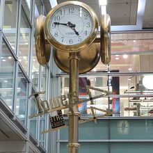 名古屋駅はJRの他にもいくつかの線の駅が接続していて、それぞれのモールやタワーがつながっており、複雑な構造をしています。わかりやすくて有名な待ち合わせの名所が「金の時計」だそうです。よく見ると、「タワーズ」「JRゲートタワーズ」と矢印がついているんですね。でもちょっと金色だから見づらいかな。