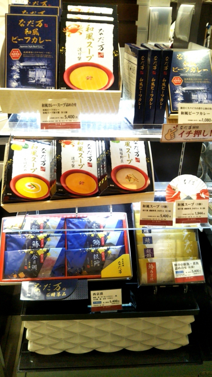 東京 日本橋の日本橋三越本店本館 B1Fに「なだ万厨房 日本橋三越本店」が出店しています。なだ万のレトルト食品も販売されていて、なだ万ビーフカレーやなだ万和風スープなどがあり、贈答品としても人気があります。