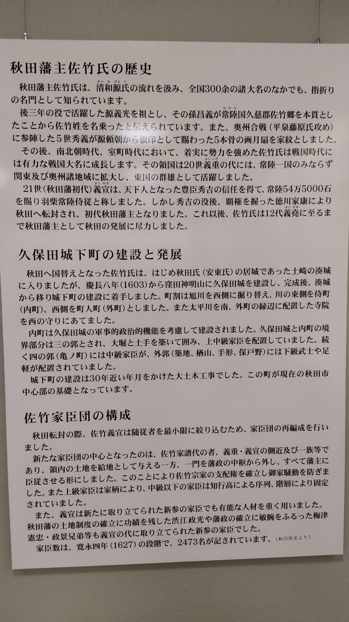 訪問時は「藩主からの手紙」という企画展があり歴代藩主の書状が展示されていたのですが、徳川家康の死の前後に初代藩主佐竹義宣が江戸から国元に国境の警備や江戸藩邸に鉄砲を送るよう指示する書状もあり、当時の緊迫感が伝わってきて興味深く拝見しました。