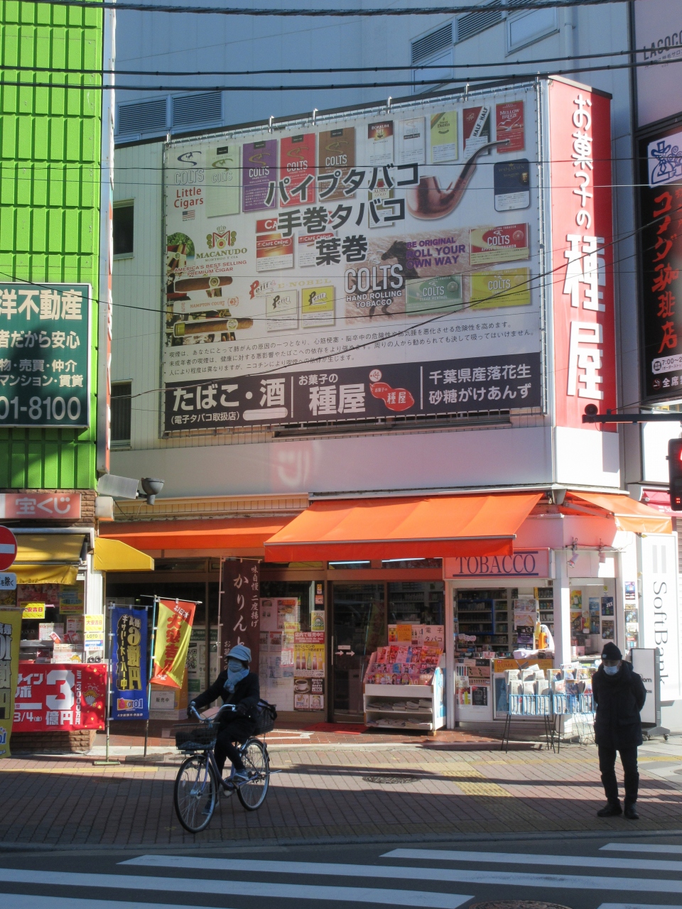 赤羽駅東口から500mほど、昭和の香りが感じられる赤羽中央街商店街の出口近くに建つ、お菓子とたばこを販売している店です。なぜかわかりませんが、店についてのコメントをしてほしくない雰囲気が感じられたので、今回は赤羽にあるもう一軒のお菓子の種屋さんについてコメントさせてもらいます。場所は駅東口から70mほど、道路を挟んでホテル・メッツの向かいに建っています。かつてはお菓子中心に販売していたそうですが、現在はたばこを中心に営業しています。店内にはいろいろなたばことともに、煎餅やかりんとう、落花生などが並び、店頭では新聞が売られていました。タバコを吸わないため、店の外から店内を覗いていたところ、店の方が見るだけでもいいですから入っていってくださいと優しく声をかけてくれました。