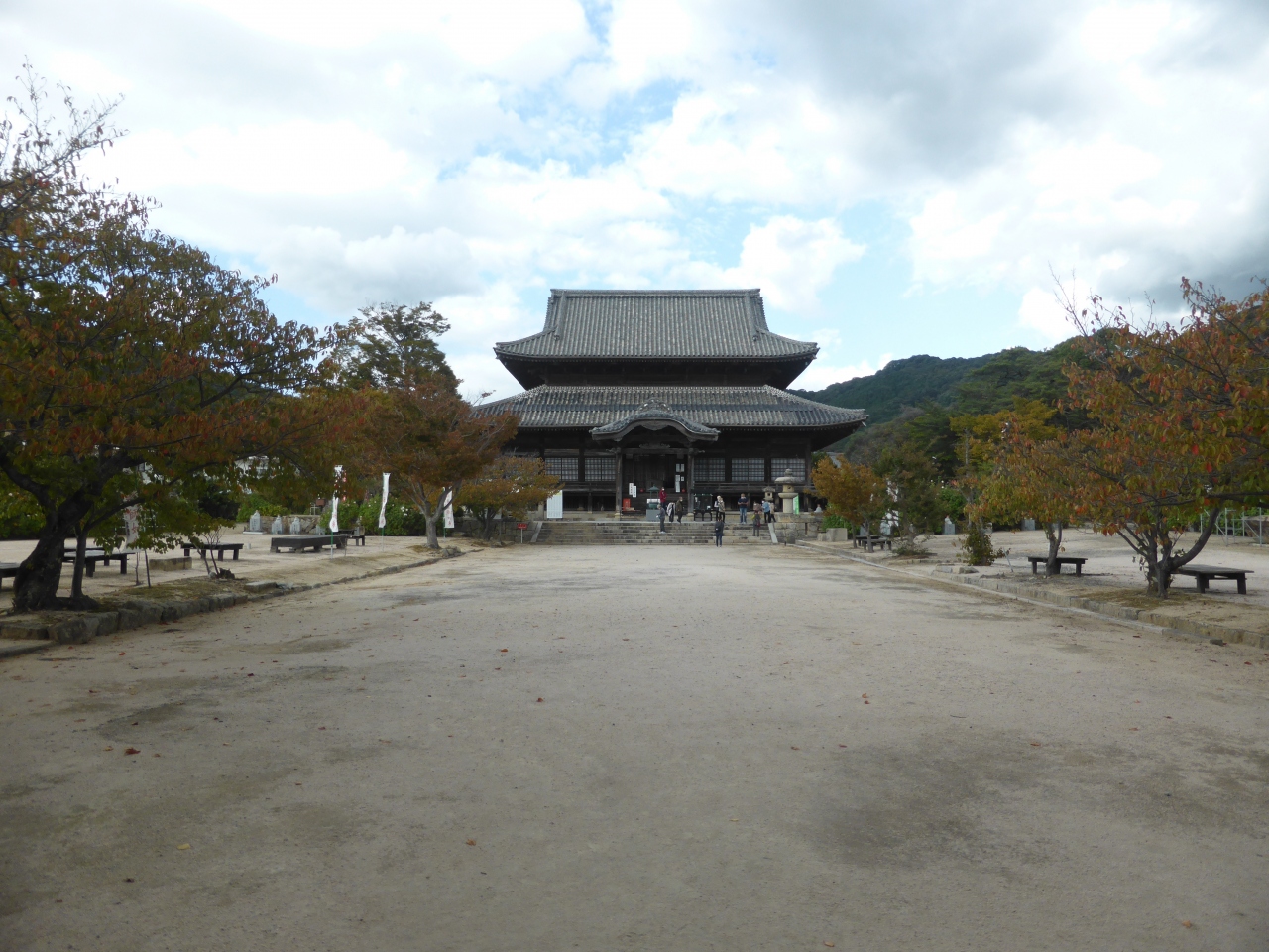 見上げるような大きな寺院建築。天気も良く青空に建物が良く映える。