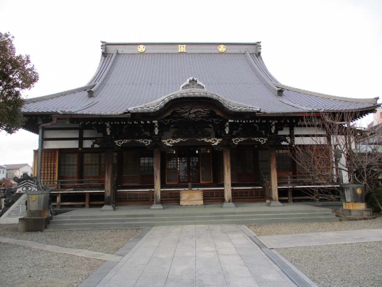 谷中にたくさんある寺院巡りの途中で、規模も大きくて敷地も広い寺院に立ち寄りました。それもそのはず、徳川家康にゆかりのあるお寺で、寺門から奥に見える本堂の建物が、見事な景観だと思いました。本堂も風格があって、その傍にはとても大きな獅子口瓦が残されていました。また鐘楼も建てられていて、寺院全体に徳川家の威光が感じられるお寺だと思いました。