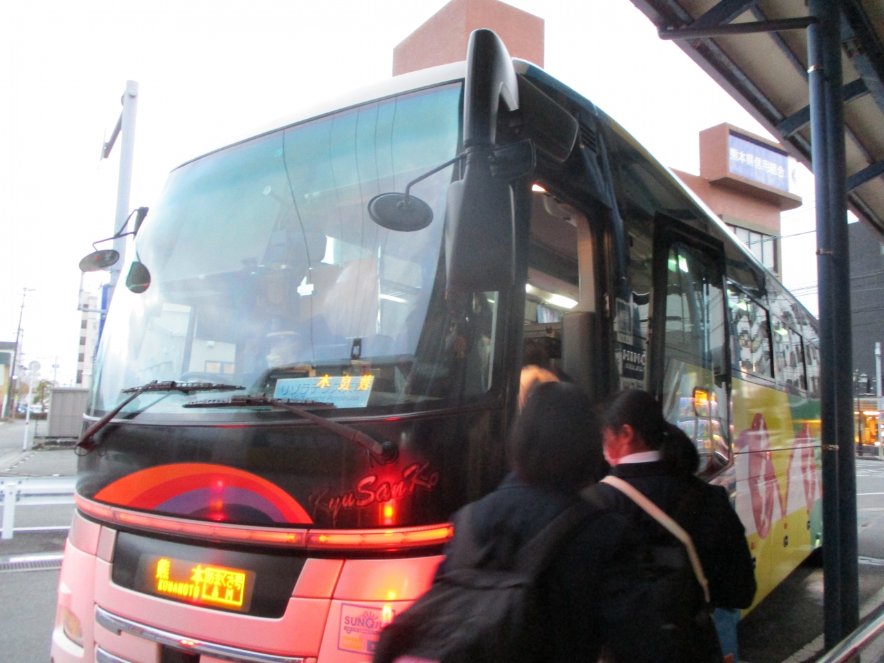 私は熊本桜町バスターミナルから本渡バスセンターまで往復したのですが、途中、宇土の海岸線や天草のパールラインや松島などを通過するので、車窓からの景色が十分楽しめました。帰りは夕方だったので、学校帰りの学生さん達も乗車した。