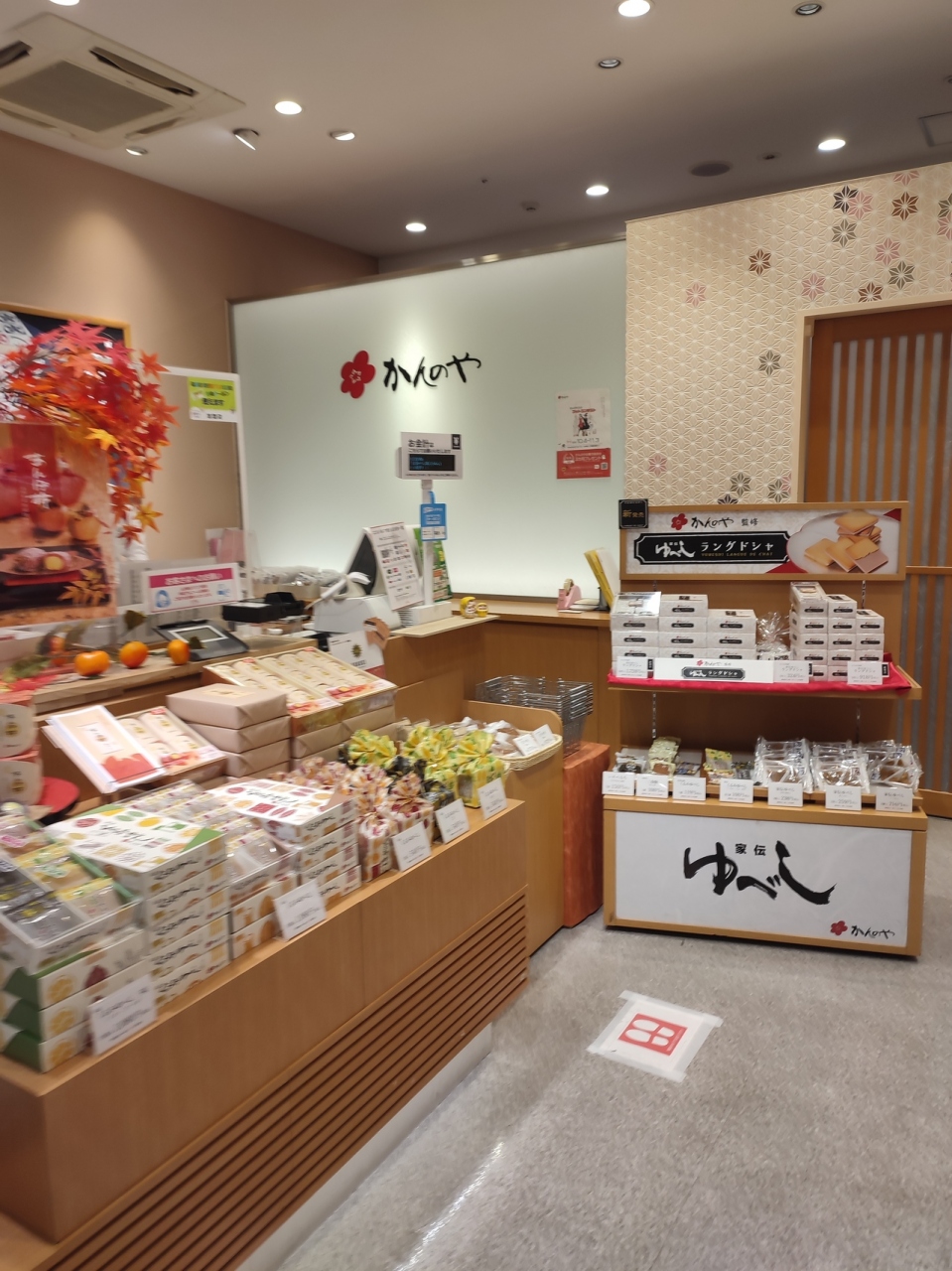 郡山駅にある商業施設のエスパルにあります。ゆべしという商品が看板商品になっています。少しかわった形をしています。あげる前に念のために試食用で買ってみたのですが、かなり甘みが強く好みが別れそうな感じはしました。