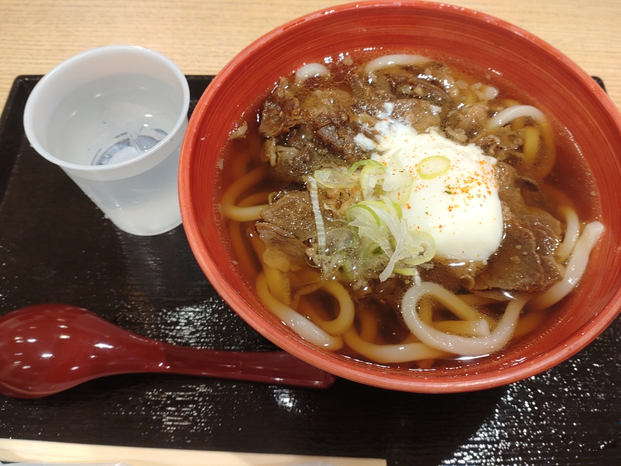 乗り継ぎに時間的余裕がなかったので、搭乗口が目の前のこちらで食事をとることにしました。券売機の前でどれにしようか悩んでいると、店員さんが出てきて、もううどんしかできません、ANAカードでの支払いもマイル獲得もできませんって、まだ17:40ですげど。仕方がないですね。焦らずに食べられてよかったです。肉がかための肉玉うどん。ごちそうさまでした。
