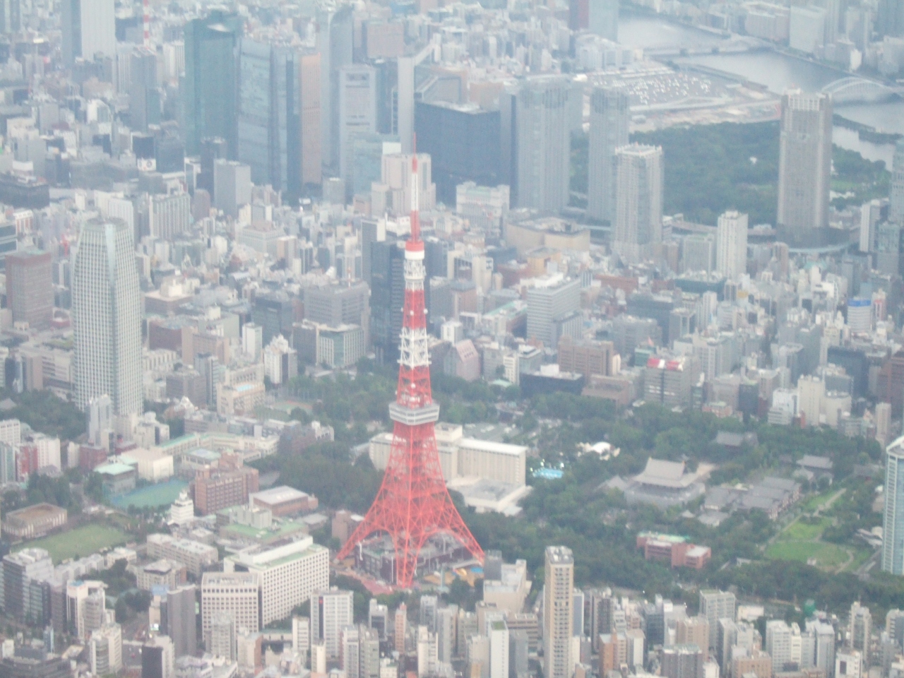 この姿を見ると東京に来たという実感が強くなりますが、羽田空港への新しい着陸ルートの機内からも良く見えました。