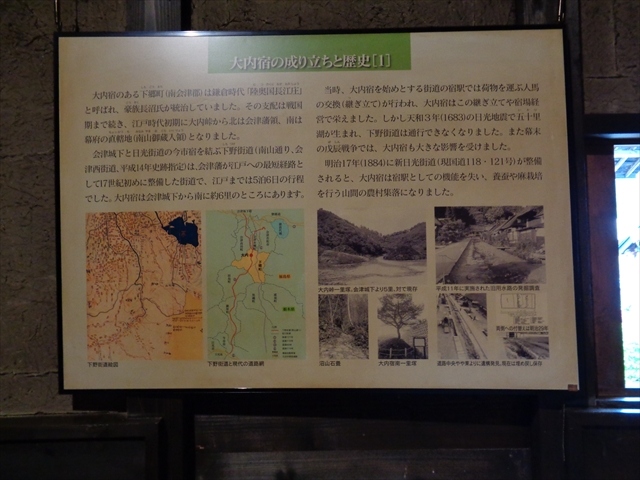 大内宿本陣の跡を再現した建物に当時の生活や大内宿の歴史を展示した展示館です.入館料は250円と格安なので,お勧めの施設です.大内宿は会津と日光を結ぶ街道沿いの宿場町で,会津藩が参勤交代で使った場所でもあるそうです.本陣自体は再現されたものですが,周囲の景観とマッチしていて,それほど新しさは感じません.中の展示物は驚くものはないですが,大内宿の歴史が良く分かるので,歴史の好きな人には良い場所だと思います.
