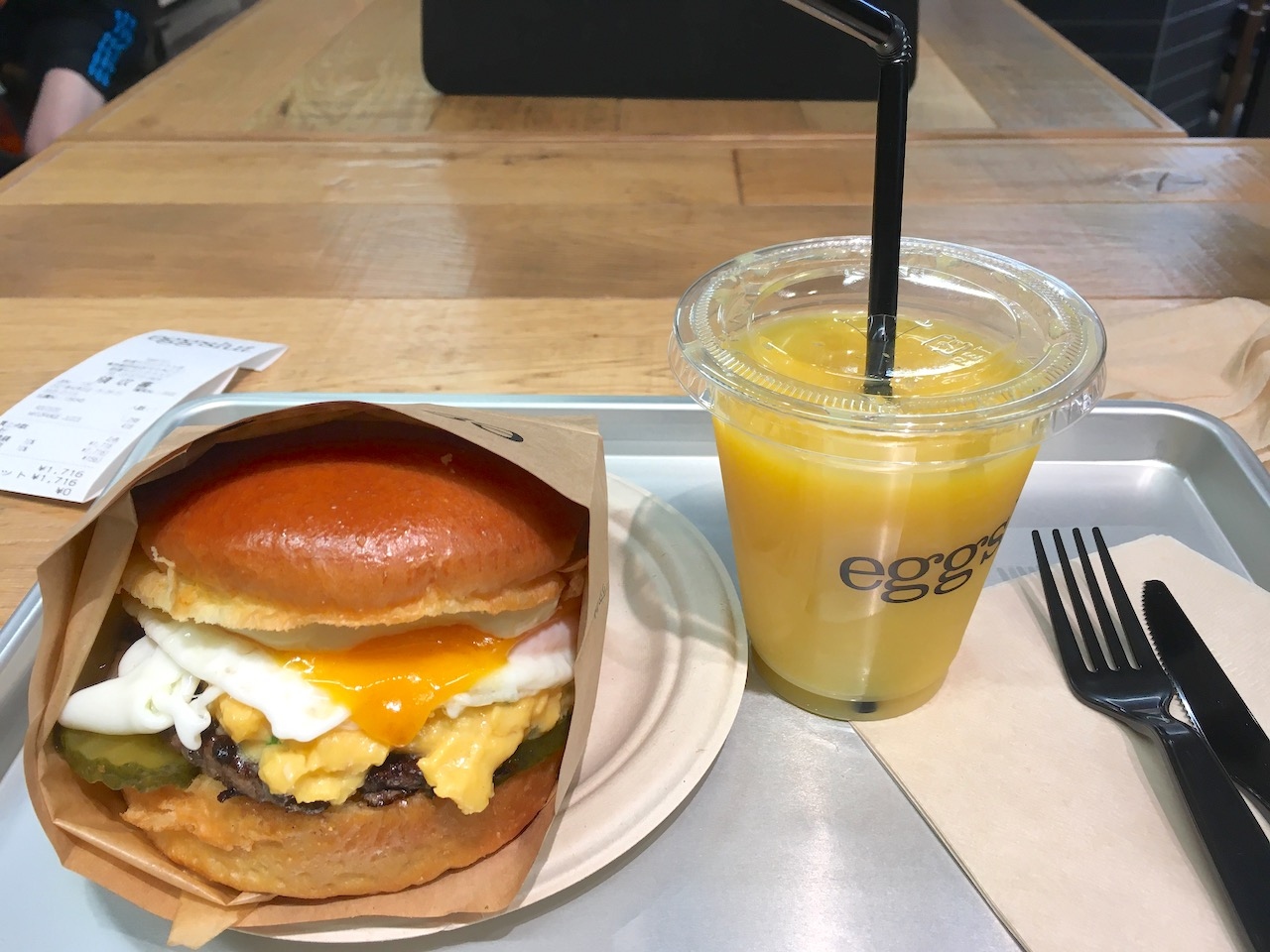 エッグサンドとオレンジジュースのセットをいただいてきました。