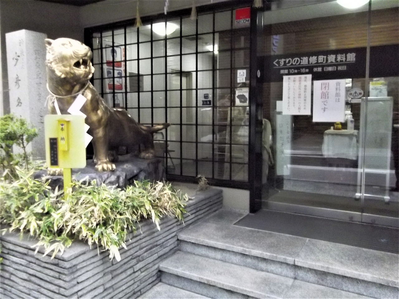 また、参道入口横に在る「くすりの道修町資料館」も一緒に見学をどうぞ!、現在はコロナ禍で感染防止の為に休館中でした。