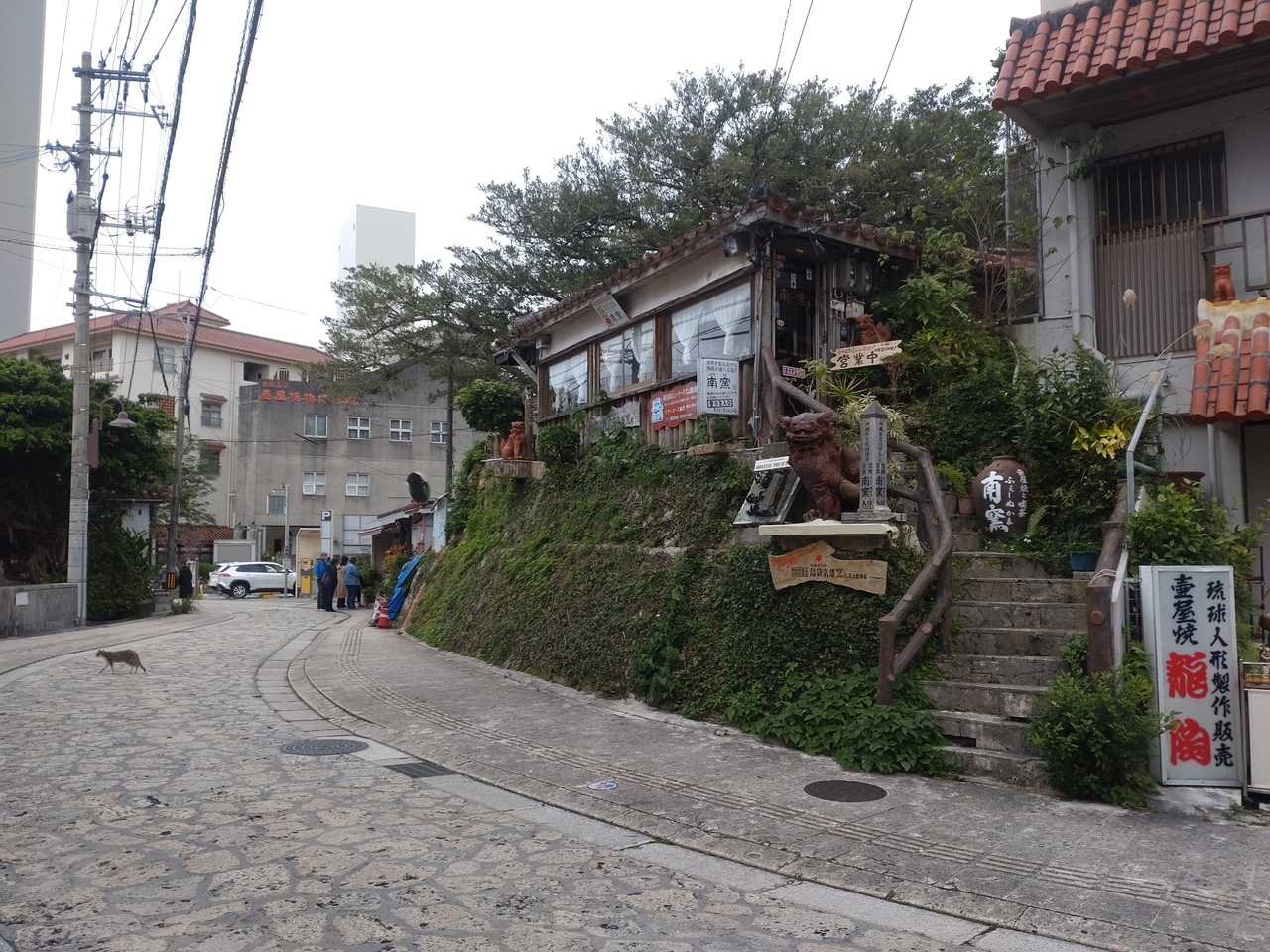 国際通りから足を延ばしてやちむん通りに行ってみました。石畳の道は首里で見たのに似ていてよい雰囲気です。国際通りのお土産屋や飲食店は3分の2くらいクローズしていましたが、こちらはほとんどが営業中でした。