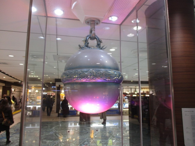 JR東京駅の中央地下一階コンコース構内の八重洲地下中央口改札内に銀の鈴がありました。4代目銀の鈴は東京駅エキナカ商業施設グランスタのエリア内にアクリルケースにライトアップされ目立ってました。コロナ渦ですが待ち合わせ場所として利用しました。近くに休憩ベンチがありお土産買いながら休憩できました。この銀の鈴は東京藝術大学学長宮田亮平氏の製作だそうです。パステルカラーで雰囲気良かったです。