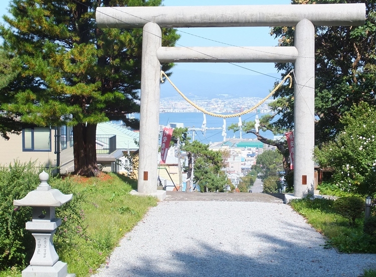 高龍寺の前を通る魚見坂を函館の坂でもっとも西に位置する坂として基準にするなら、幸坂は西から数えて4本めの坂。この坂はいわゆる称名寺通りでは止まらず、さらに上へと続いています。突き当たりは山上大神宮。途中にロシア領事館があるので訪れるきっかけはここでしょう。ただ老朽化していて外観しか見ることができません。山上大神宮まで必死に上り、港を見下ろすと、そほぼほぼ函館山の山麓だけに高さがそれなりにあり、他の坂とは違ったアングルで港を見下ろすことができます。函館の坂を楽しむには「八幡坂・基坂・大三坂」の人気スポットコースもよいですが、体力に自信があるなら、幸坂・弥生坂を制覇する長い坂コースもオススメです。単純に西から順に一本ずつ登っていくとヘビーなことこのうえないので要注意。