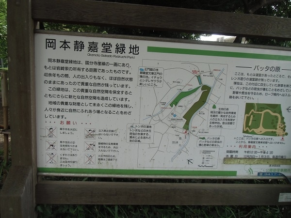 説明板によると、この緑地は国分寺崖線の一画にあり、元は岩崎家の所有する庭園であったものです。