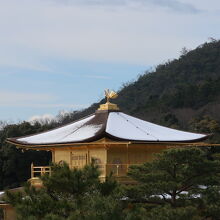 全体的ではなかったものの、薄っすらと雪化粧している金閣寺が見られ