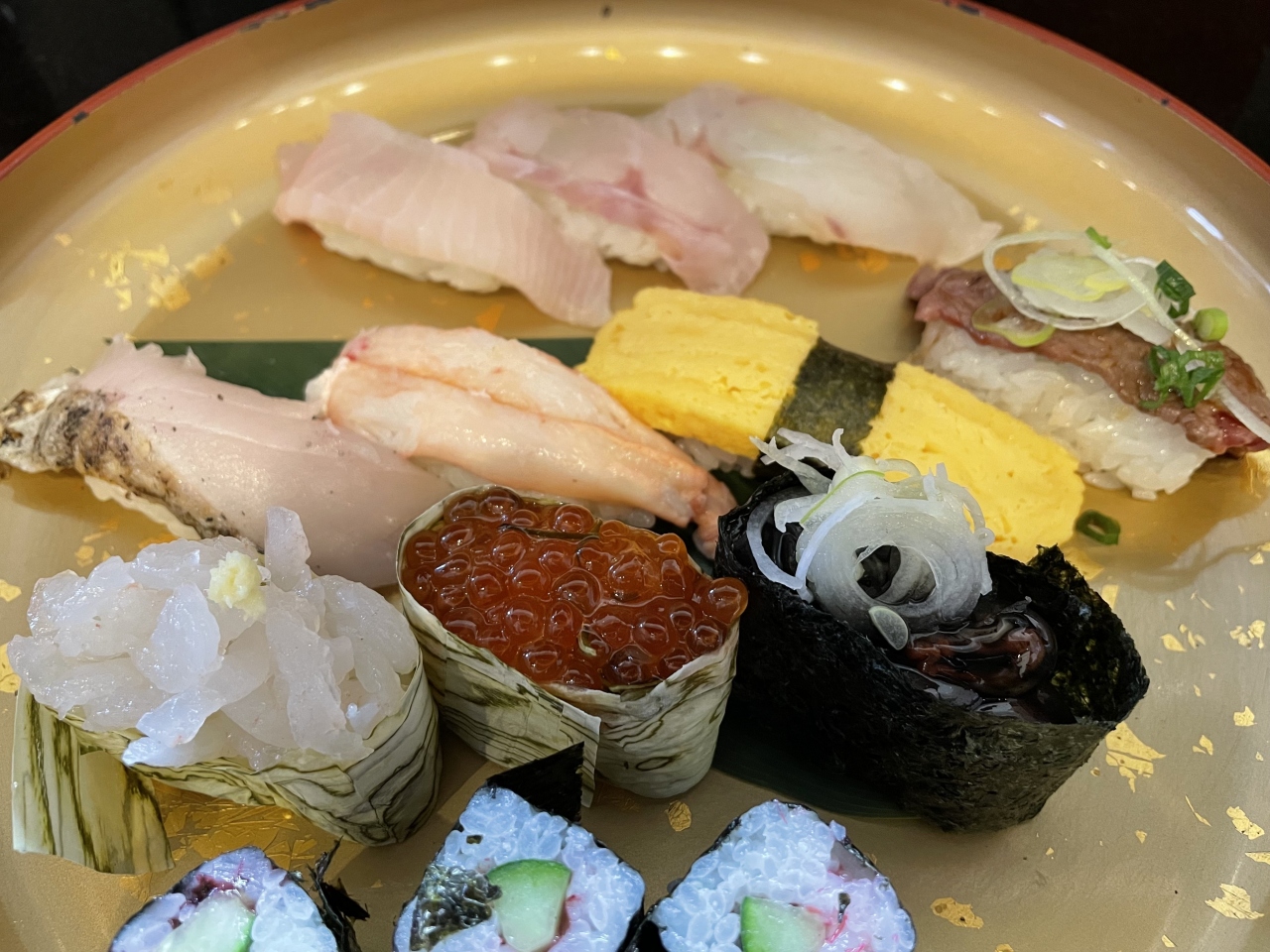 お寿司はどれも美味。カニも味が濃くて美味しい。意外にも富山牛のお寿司がとても美味しかったです。富山に来て肉のお寿司はセットに入ってなかったら自らは注文しなかったと思うので、意外な発見ができたし美味しかったし得した気分でした。