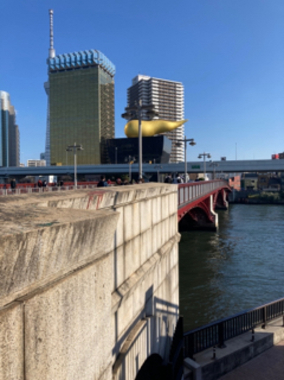 東京スカイツリー側の景色はアサヒビールの本社のランドマークや本社ビルがあり、景色が良いです。