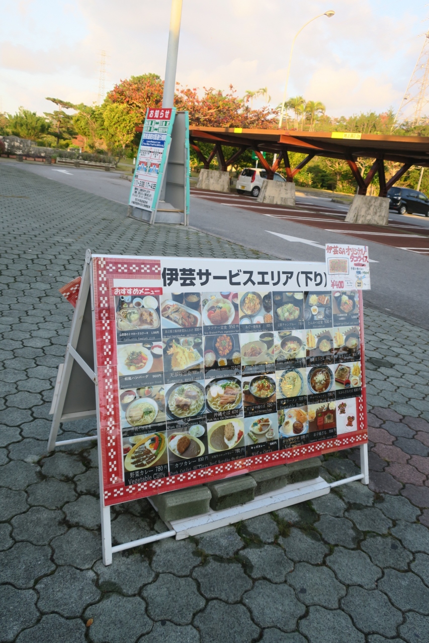 沖縄自動車道の伊芸サービスエリアはとても小さいところですが,レストランではいろいろな食べ物を楽しむことができます.カレーのようなおなじみのもの,タコライスのような沖縄らしいものなど様々です.