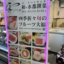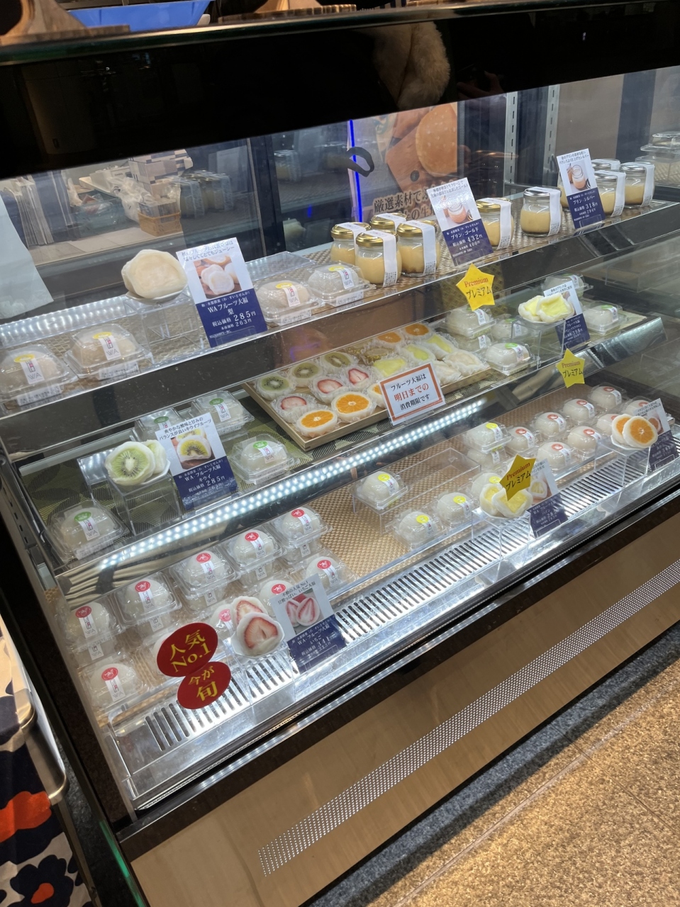 ガラスショーケースには 美味しそうな「フルーツ大福」がたくさん並んでいました。