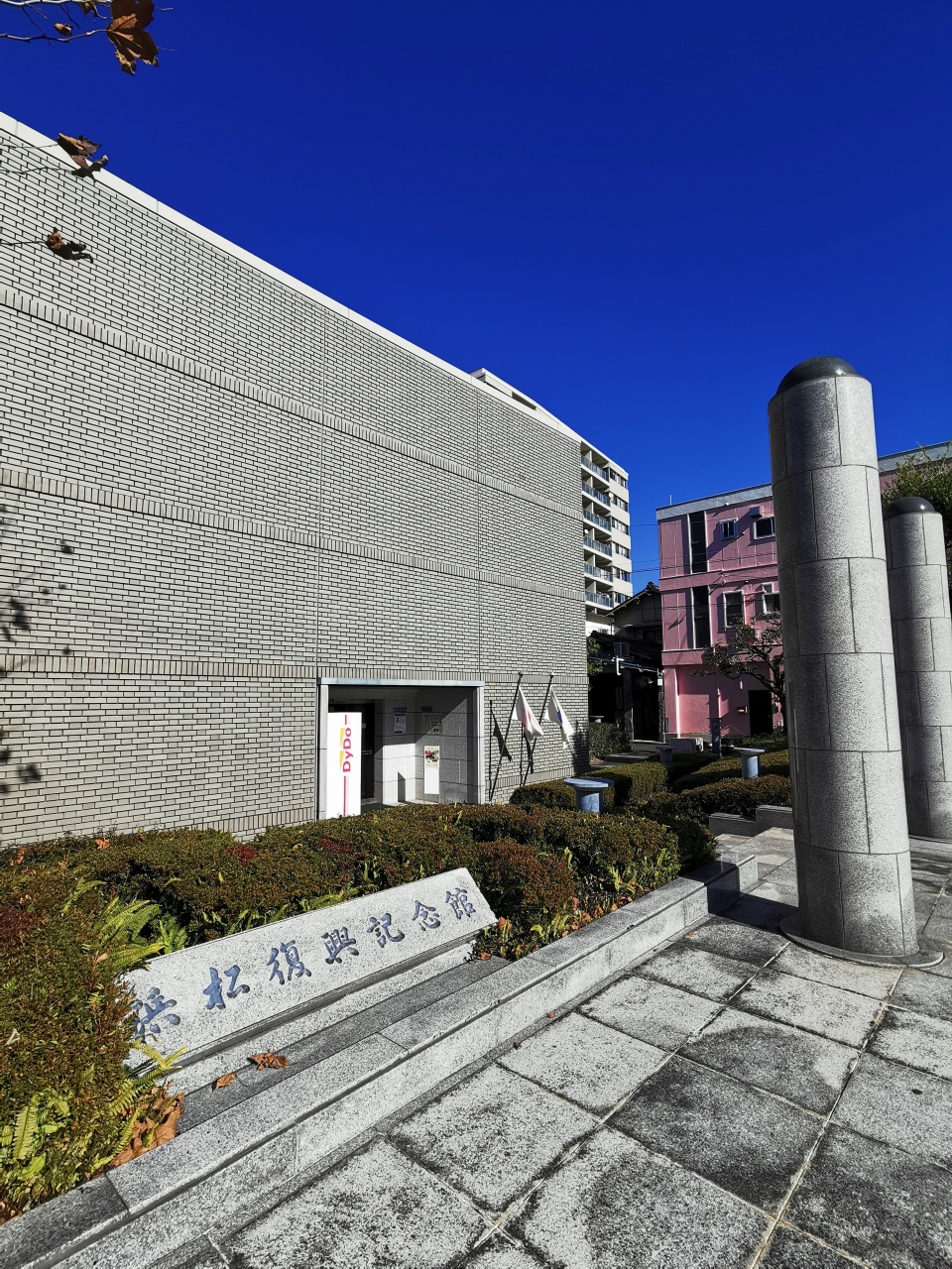 静岡浜松ドライブ旅。中田島砂丘・浜松基地エアーパークを見学した後、浜松市内に到着。浜松城公園の駐車場に車を停めて、自転車で浜松市内を散策しました。五社神社と五社公園の目の前に「浜松復興記念館」がありました。太平洋戦争時の空襲から復興した歴史が展示されています。人は誰もいませんでした。静かでした。