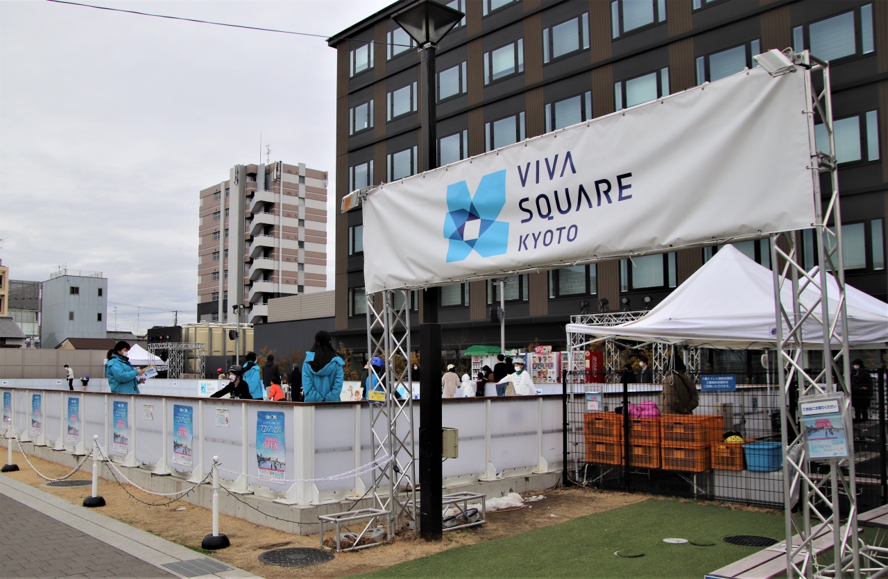 ビバスクエア京都開催中です。冬季限定の屋外型アイススケートリンクがホテル前に設置されていて子供達がスケートを楽しんでいました。京都では唯一のスケートリンクです。アイススケートリンクは3月6日までオープン。