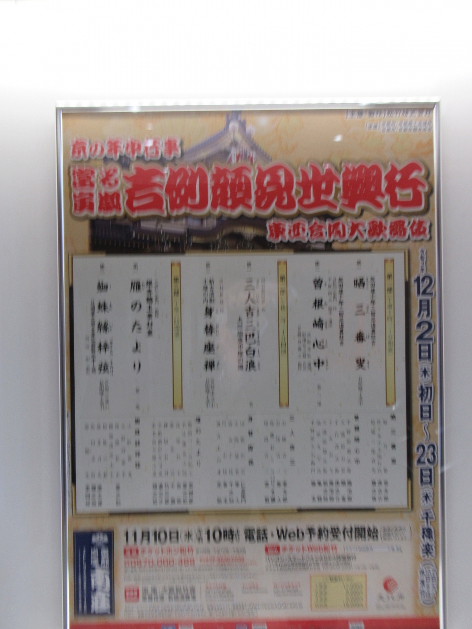 阪急の河原町駅から東に進んで四条大橋を渡るとにしんそばで有名な松葉があってその隣が歌舞伎で有名な南座です。