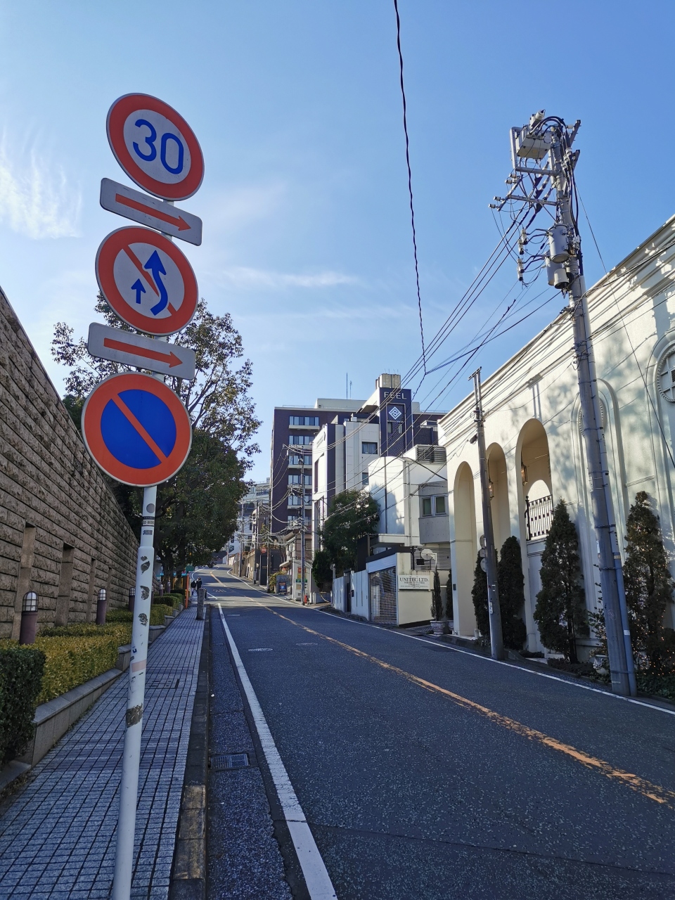 大桟橋駐車場に車を停めて早朝の横浜港を自転車で散策しました。大さん橋ふ頭ビルから山下公園へ。堀川にかかるフランス橋を渡ると「港の見える丘公園」と「山手迎賓館」の間を登る坂道が「谷戸坂」です。特に特徴はないですが、周りの雰囲気はとても良いです。