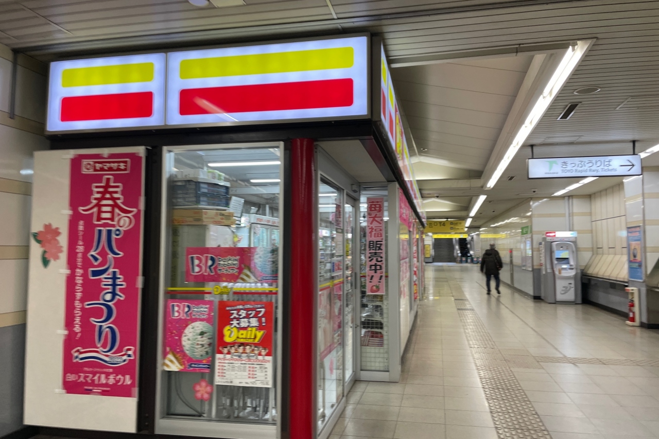 小さな駅ですが、店の前を通る狭い通りは、いつも信号待ちの車で渋滞しているので、渡る際には注意です。