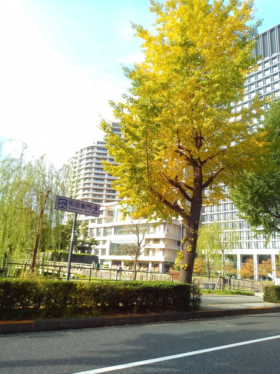 東京・『皇居外苑』の『和田倉門』近くに、いちょうの木が植えられています。和田倉門近くを通りかかった時、とても綺麗な紅葉となっていてお見事でした。