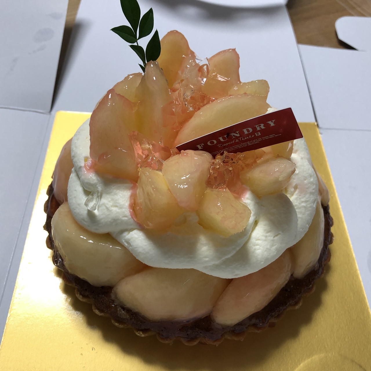 季節のフルーツをふんだんに使ったスイーツがお得意のファウンドリー。季節限定の桃のタルトを購入。2~3人で食べれる程よい大きさでした。桃が甘くて瑞々しく底のタルト部分は紅茶のタルトになっていて、これが桃とばっちり相性が良いのです。