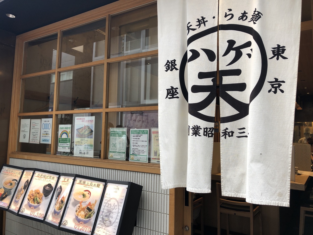 初代店主がハゲ頭だったそうな…店の名前がそのもので笑えます。天ぷら専門店の本店の方よりずっとカジュアルです。天丼とラーメンはなかなか無い組み合わせで新しいと思います。実際食べたら胃には激重でしたが(泣笑)さすがに天ぷらに豚骨ラーメンは胃がびっくりしましたね。ラーメンはオリジナルでなく一風堂が監修してるらしいです。