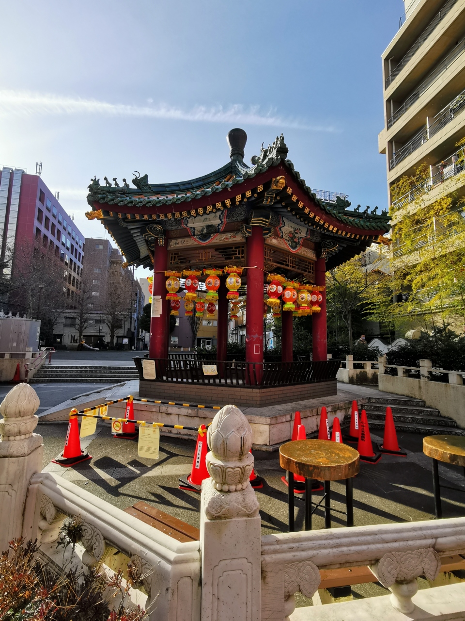 大桟橋駐車場に車を停めて早朝の横浜港を自転車で散策しました。大さん橋ふ頭ビルから山下公園へ。山下公園から元町界隈。元町・中華街駅から横浜中華街をぶらぶらしました。中華街と言えば門。門は全部で10基との事です。朱雀門から入って横濱媽祖廟を参拝。横浜中華街の中心あたりにあるのが山下町公園です。さほど広くはありませんが施設も中華風。太極拳しているおじさんもいました。
