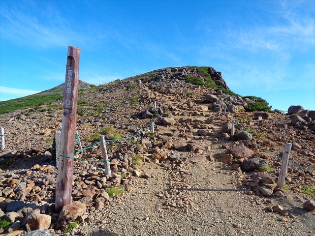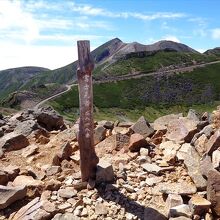 乗鞍岳の頂の一つで,標高は2818mです.剣が峰に行く途中に登山口があるので,剣が峰の行きか帰りどちらかに登っても良いと思います.頂までは15分くらいで登れると思います.頂上からは畳平のレストハウスや乗鞍の観測所などが見えます.登山道がやや狭く,浮き石も多く,頂上は比較的狭いです.