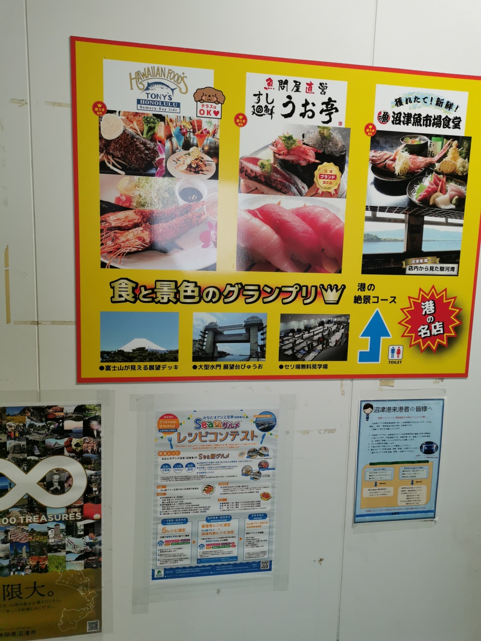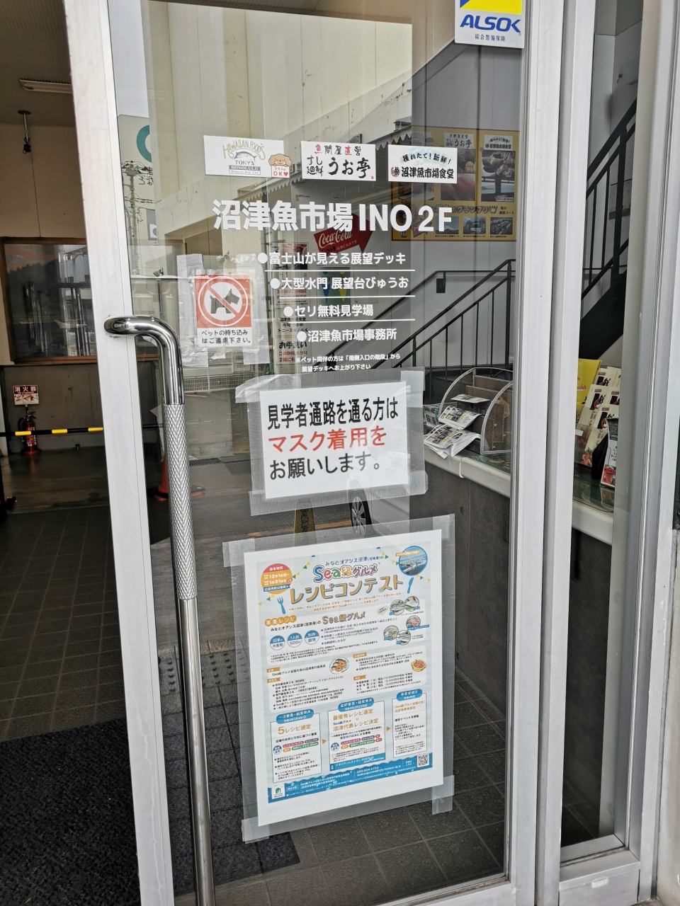 静岡ドライブ。沼津界隈を観光しました。沼津御用邸記念公園から沼津港に移動しました。沼津みなと新鮮館の無料駐車場に車を停めて港を散策しました。沼津魚市場INOは漁港の上にある施設。2Fに上がるとセリ場を見下ろすことができます。時間が遅いので既にセリは終わってました。奥手にはレストランもあります。