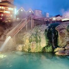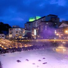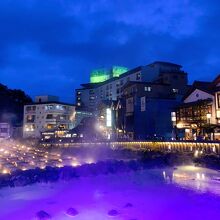 色々な色で灯される、湯煙の中のライトアップは幻想的でした!