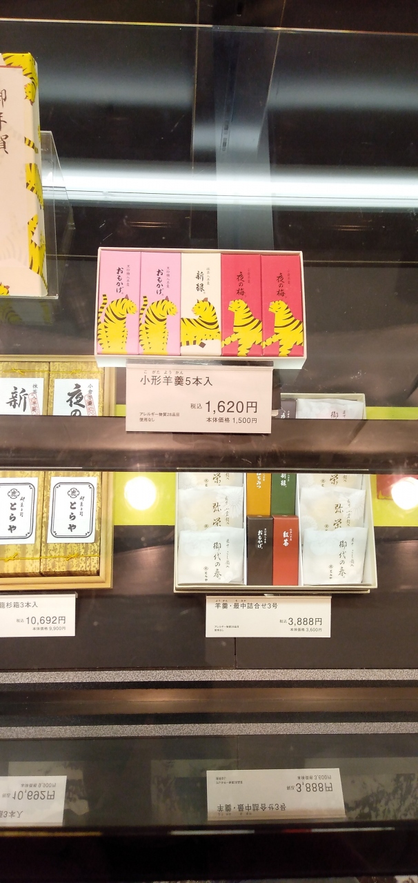 実は静岡県内(御殿場)に主力工場がある虎屋さん。店舗は御殿場と、ここ松坂屋さんB1の二店しかありません。小豆の姿を闇夜に浮かぶ梅の花に見立てた”夜の梅”を購入。ぎっしり締まった餡は、しっとり艶やかで優しい甘さ。これぞ老舗の看板商品、結構なお品です。