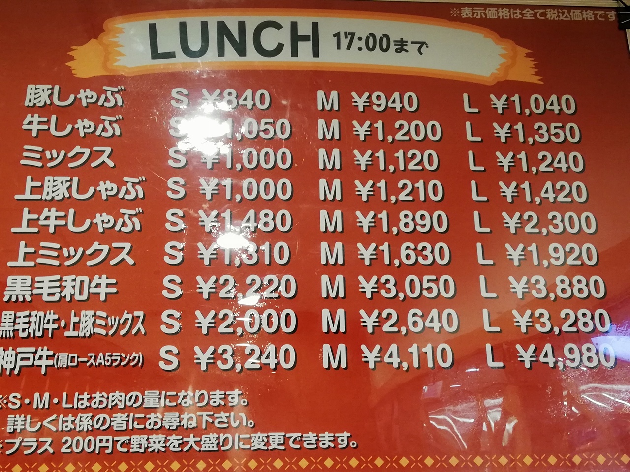 豚しゃぶのSサイズを頂きました。お肉は6枚ぐらいで、野菜もきちんとあり(モヤシが多め)、ちょうど良い量でした。