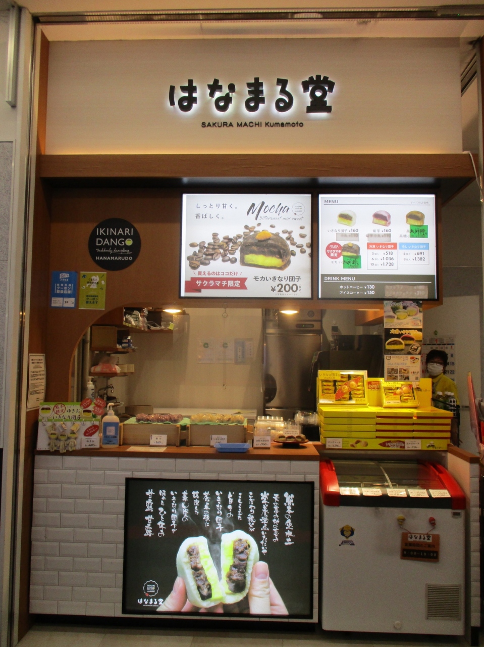 私の大好きないきなり団子屋さんで、快速あまくさ号や、九州横断バスのバス停の近くにありました。色々ないきなり団子があって、その中でも、珍しいのが、「モカいきなり団子」で、1個200円と他よりちょっと高いですが、この店限定でした。