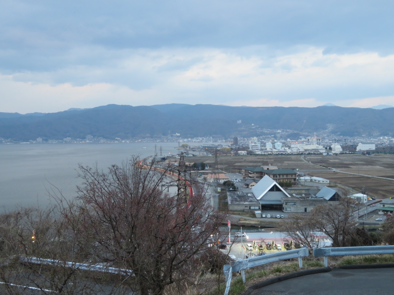 諏訪湖畔の山側を通っていますので、諏訪湖をサービスエリアから一望できます。