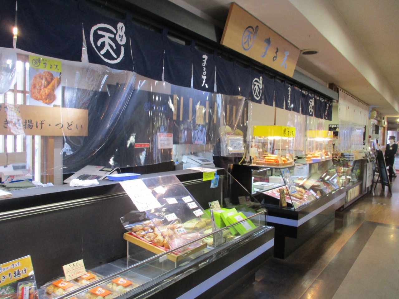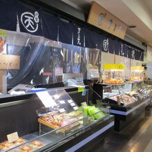 棒、チーズ棒、かき揚げ天その他、おいしそうに並んでいます。ちょっと小腹がすいたとき、一つからでも気軽に買えます。おみやげにもよさそうです。