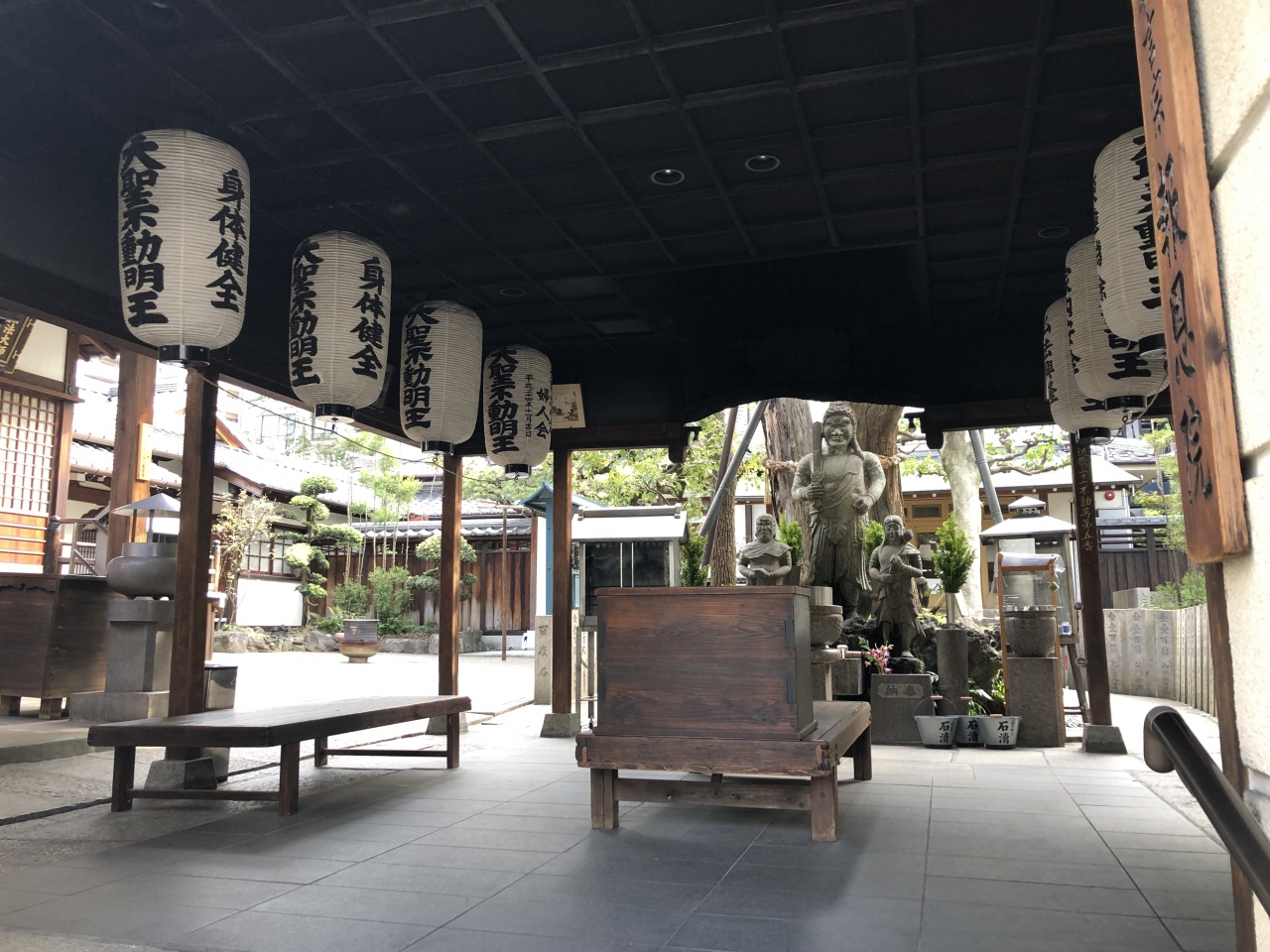 中央区にある真言宗醍醐派の報恩院。山門をくぐると、真正面に北向不動明王が迎えて下さいます。北向き不動は悪魔降伏のご利益があります。御本尊は不動明王。本堂には不動明王と鎮宅霊符尊もお祀りされています。