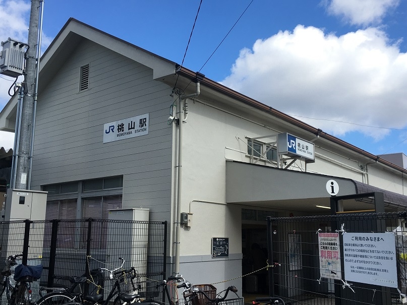 JR奈良線の桃山駅のホームに植樹されていますが駅外からも眺めることができます。京都駅から約10分です、いち早い桜をご覧なってください。