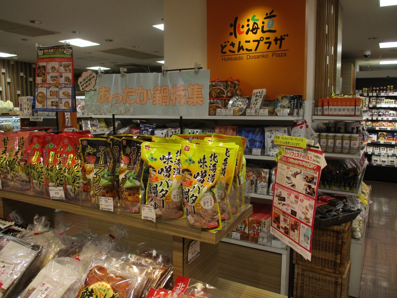 JR名古屋駅のすぐ近く、名鉄百貨店メンズ館の地下にある北海道のオフィシャルアンテナショップです。西日本ではここだけだそうです。北海道の食品、お菓子、レトルトカレーなどが多種そろっていて見ていると北海道に行ったような気分になります。