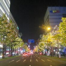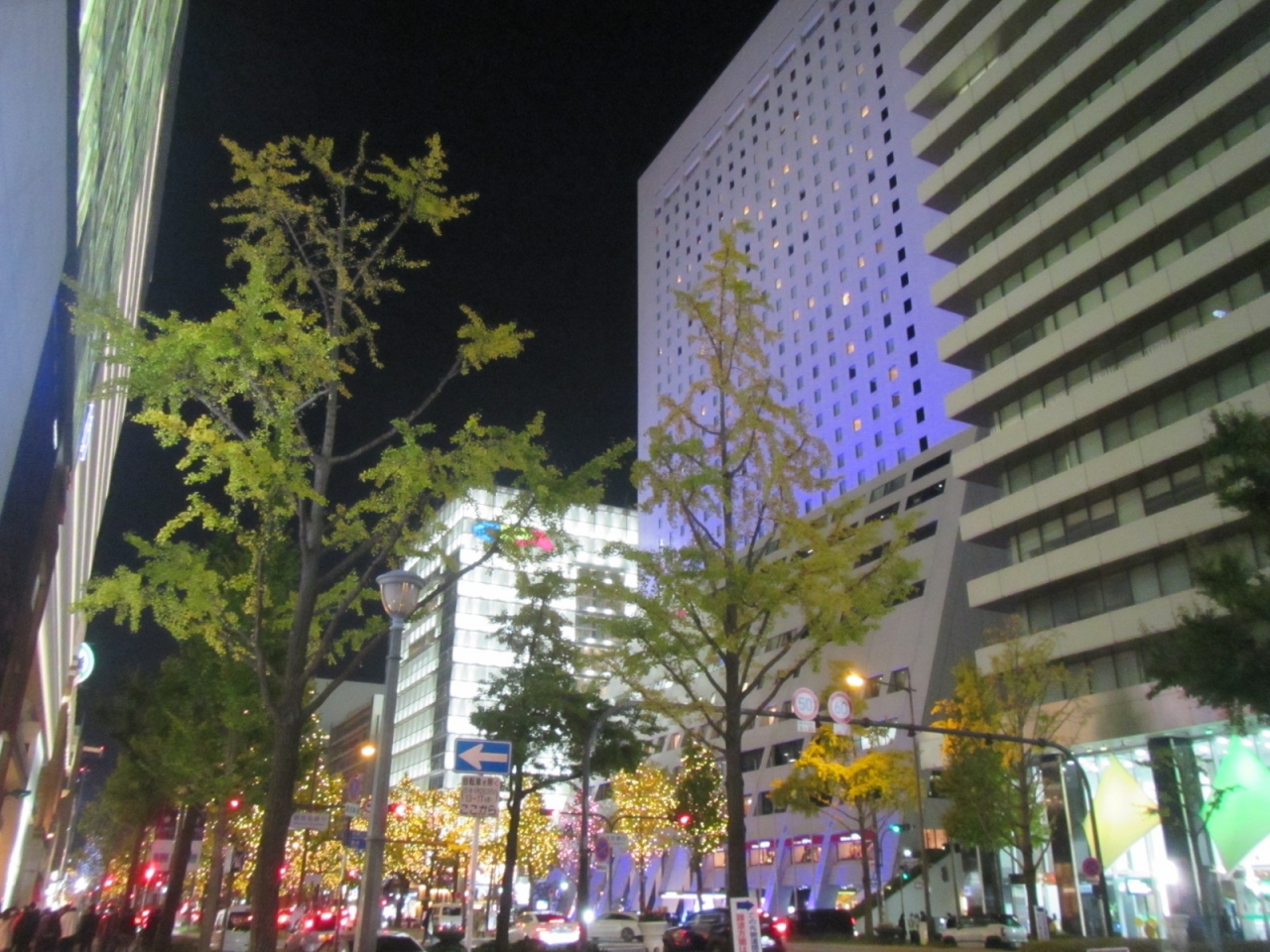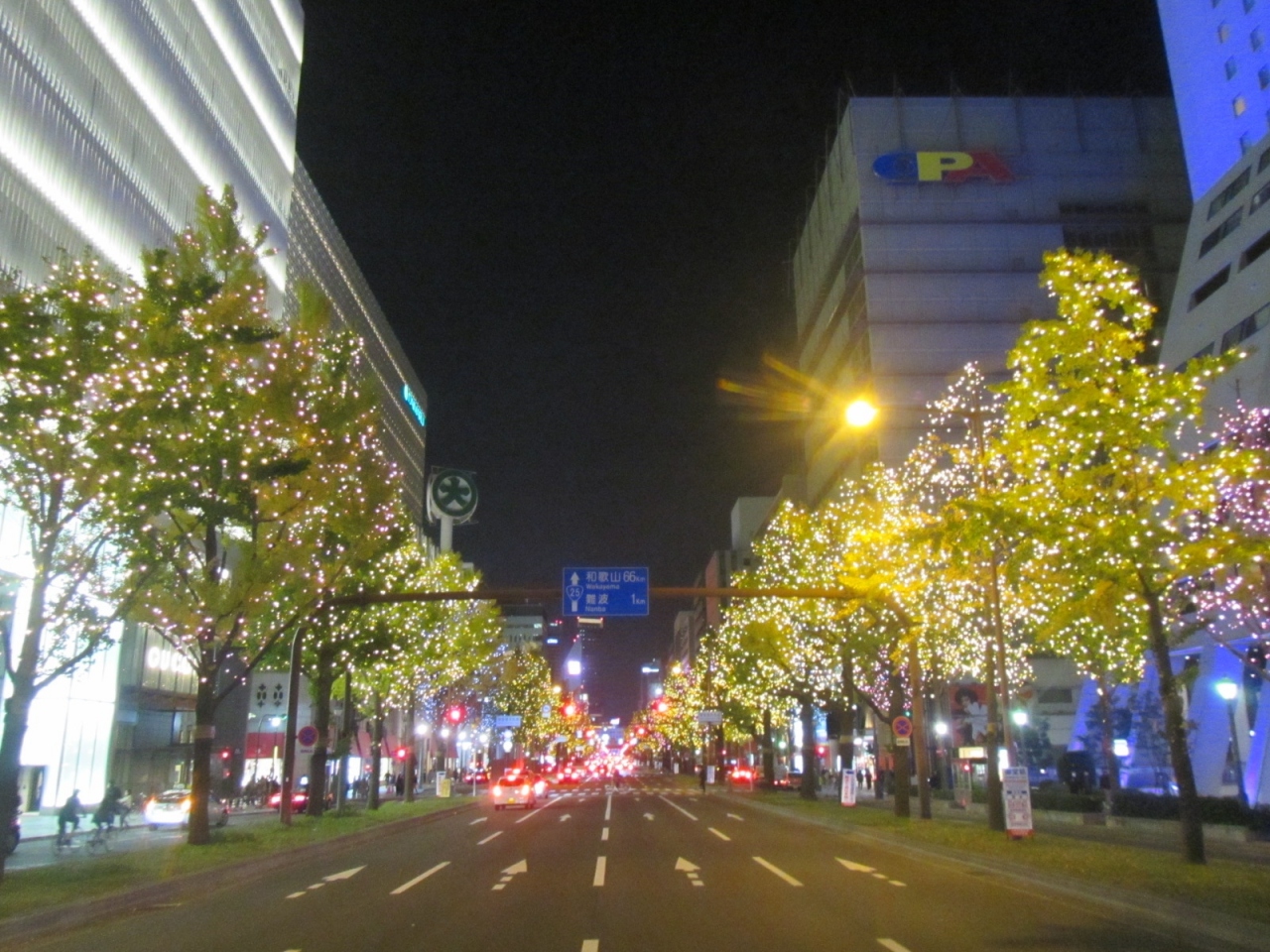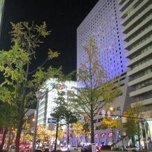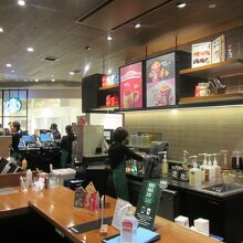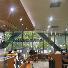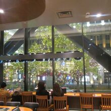 御堂筋の通りに面し、窓際にカウンター席があって、11月3日から12月31日まで(2021年の場合)の御堂筋イルミネーションの期間には、街路樹の並木のイルミネーション(17時頃~23時)を目線の高さで楽しみながら、コーヒーやフラペチーノなどをいただいて寛げます。